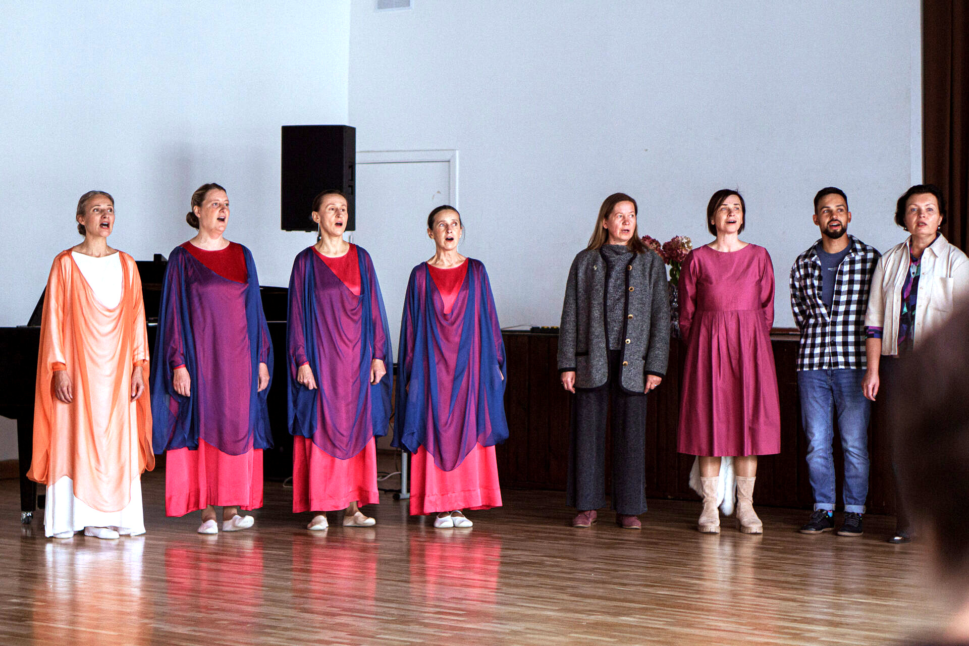 Kauno Valdorfo mokyklos mokytojai svečius pasitiko giesme „Salvator mundi salva nos“, euritmijos mokytojų pasirodymus lydėjo nuostabi klasikinė muzika bei kalbos formavimo mokytojų deklamuojami eilėraščiai.
