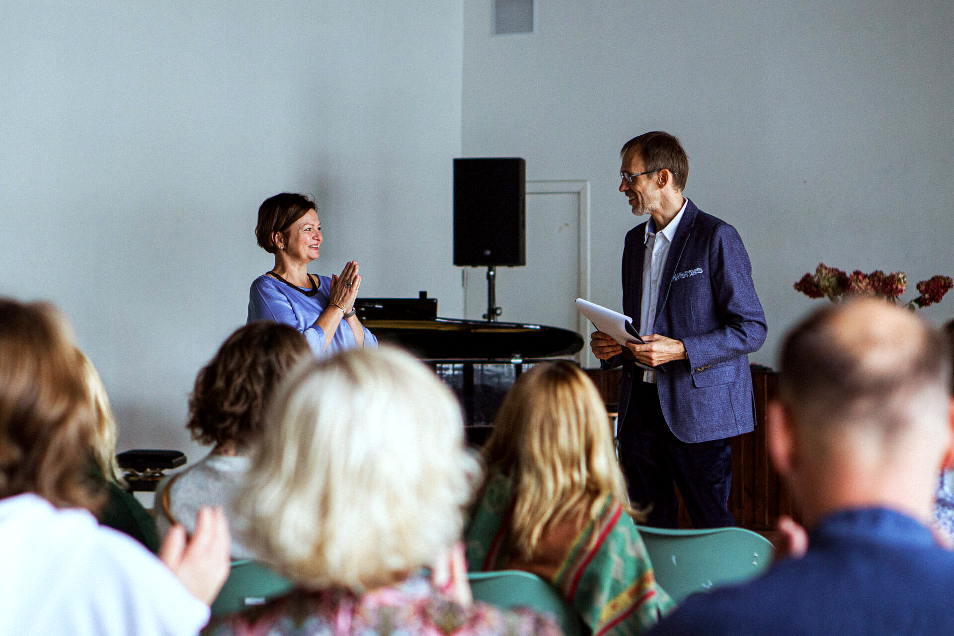 Į mokyklos menų salę sugūžėjo esami ir buvusieji mokytojai, Valdorfo pedagogikos bei mokyklos kūrėjai ir steigėjai, tėvai, esami ir buvę mokiniai.